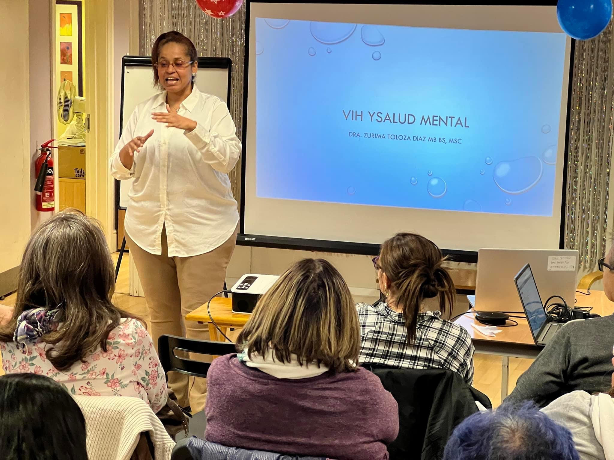 Opening and welcoming remarks included an overview of health inequalities and what is currently being done to remove barriers to healthcare. The session, with an audience of over 30 people, started with a sexual health presentation by Carlos Corredor, outlining key knowledge of HIV and STIs. Dr Zurima Toloza, Psychiatrist at St Charles Hospital in London, then talked about physical health inequalities, the psychological implications of chronic illnesses, methods to reduce stress and anxiety, therapies and treatments for better mental health, types of interventions for severe mental illness, and how to deal with relapse after stopping medication or while using drugs and alcohol. The Q&A part was intense and demonstrated concerns from the audience around the learning process to love oneself more. Other topics raised were the effects of stigma and self-stigma on one’s mental health, the need for regular support checks while dealing with mental suffering, how to differentiate between anxiety and depression, where to find others who share the same experience, natural substances for easing anxiety, and where to find free personalised expert advice.